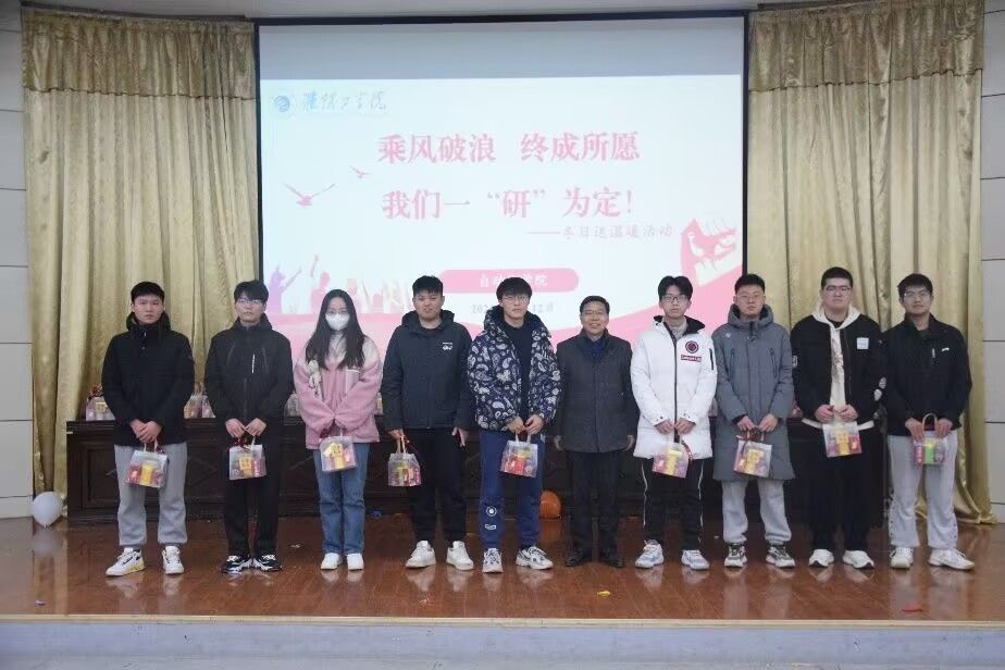 为进一步提升考研同学信心和决心,感受学院关怀与温暖,让同学们在备考过程中保持积极的心态,全力以赴追求自己的梦想,自动化学院于南苑图书馆报告厅开展“乘风破浪 终成所愿”考研慰问冬日送温暖活动。参加本次活动的有学院党委书记孙全平、副书记杨晶、毕业班班主任和全体考研学生,本次活动由杨晶主持。
